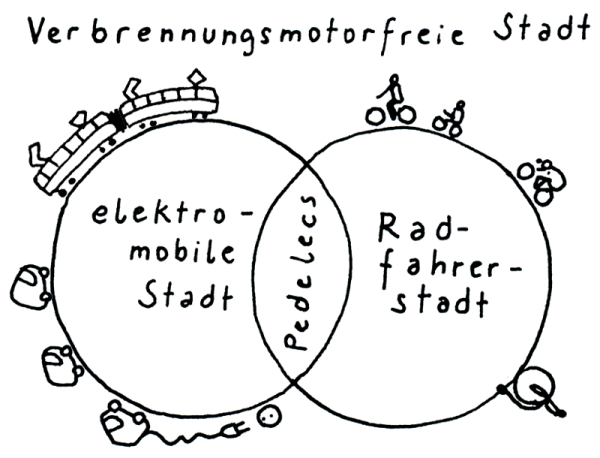 Das Projekt ist bewusst nicht als reiner Elektromobilitäts-Fokus angelegt! Die nachhaltige Zukunftsstadt wird auf einen Mobilitätsmix setzen müssen, bei dem Elektromotoren eine Antriebstechnik von vielen sein wird – wenngleich eine wichtige. Aber der zukunftsfähige Stadtverkehr muss insbesondere die Körperkraftmobilität mit einbeziehen: Fußgänger und Radfahrer. Und womöglich kommt die Strategiefindung zur Feststellung, dass der ÖPNV in der nachhaltigen Zukunftsstadt das Rückgrat der Mobilität ist.