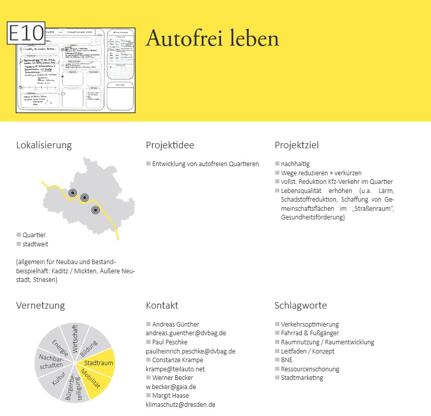 Die Akteure von „Die Woche des guten Lebens“ wählten den Stadtteil Äußere Neustadt aus, dessen Bewohnerinnen und Bewohner vielleicht für einen Tag oder besser eine Woche auf ihre Autos verzichten sollen, können, dürfen. Im Rahmen des Projektes und im besten Fall auch später in Form eines Reallabors ist es das Ziel der Verantwortlichen, den Stadtteil für den privaten Autoverkehr zu sperren. Zugleich sind die Anwohnenden aufgerufen, den gewonnenen Raum zu nutzen. Dort, wo sonst Fahrzeuge parken, könnten Tischtennisplatten aufgestellt oder könnte die Freizeit gemeinschaftlich verbracht werden. Es ist den Menschen überlassen, wofür sie die neuen Freiräume verwenden.
