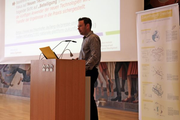 Der Vormittag der Konferenz stand ganz im Zeichen des Rückblicks auf die zweite Phase des deutschlandweiten Städtewettbewerbs und der Besonderheit des Dresdner Beitrags. Hierzu erfolgte auch eine Einordnung und Bewertung des Wissenschaftspartners, dem Leibniz-Institut für ökologische Raumentwicklung (IÖR). Anschließend wurden die weiteren Pläne der „Zukunftsstadt Dresden“ vorgestellt.