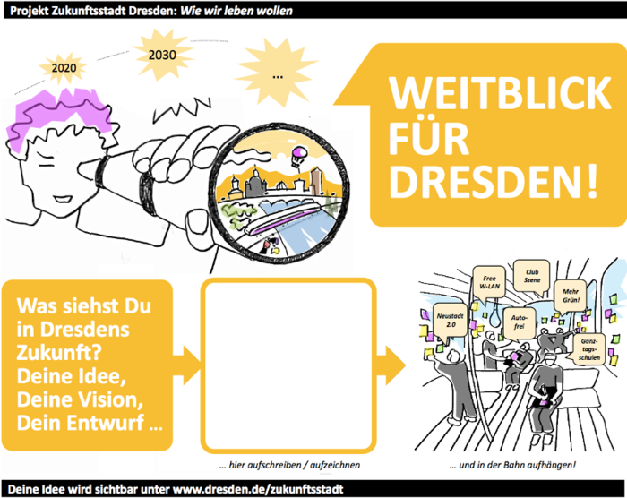 Bereits 2015 fuhren die Zukunftsbahnen. Damals wurden Visionen zu Dresdens Zukunft gesucht. 700 Anmerkungen wurden von den Forschern ausgewertet und den Mitarbeiterinnen der Landeshauptstadt übergeben.