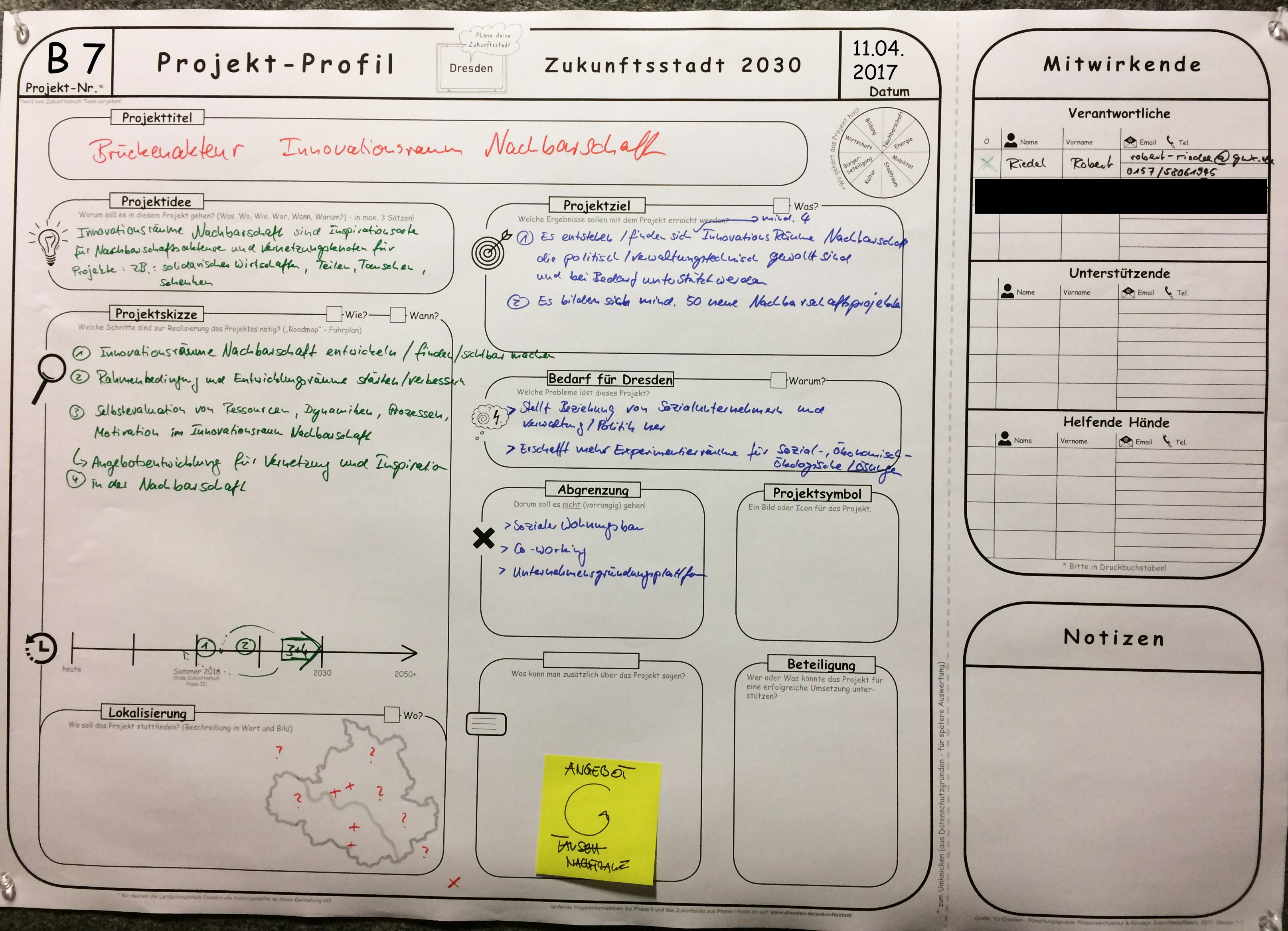 1. Es entstehen/finden sich mind. 4 Innovationsräume Nachbarschaft, die politisch/verwaltungstechnisch gewollt sind und bei Bedarf unterstützt werden; 2. Es bilden sich mind. 50 neue Nachbarschaftsprojekte