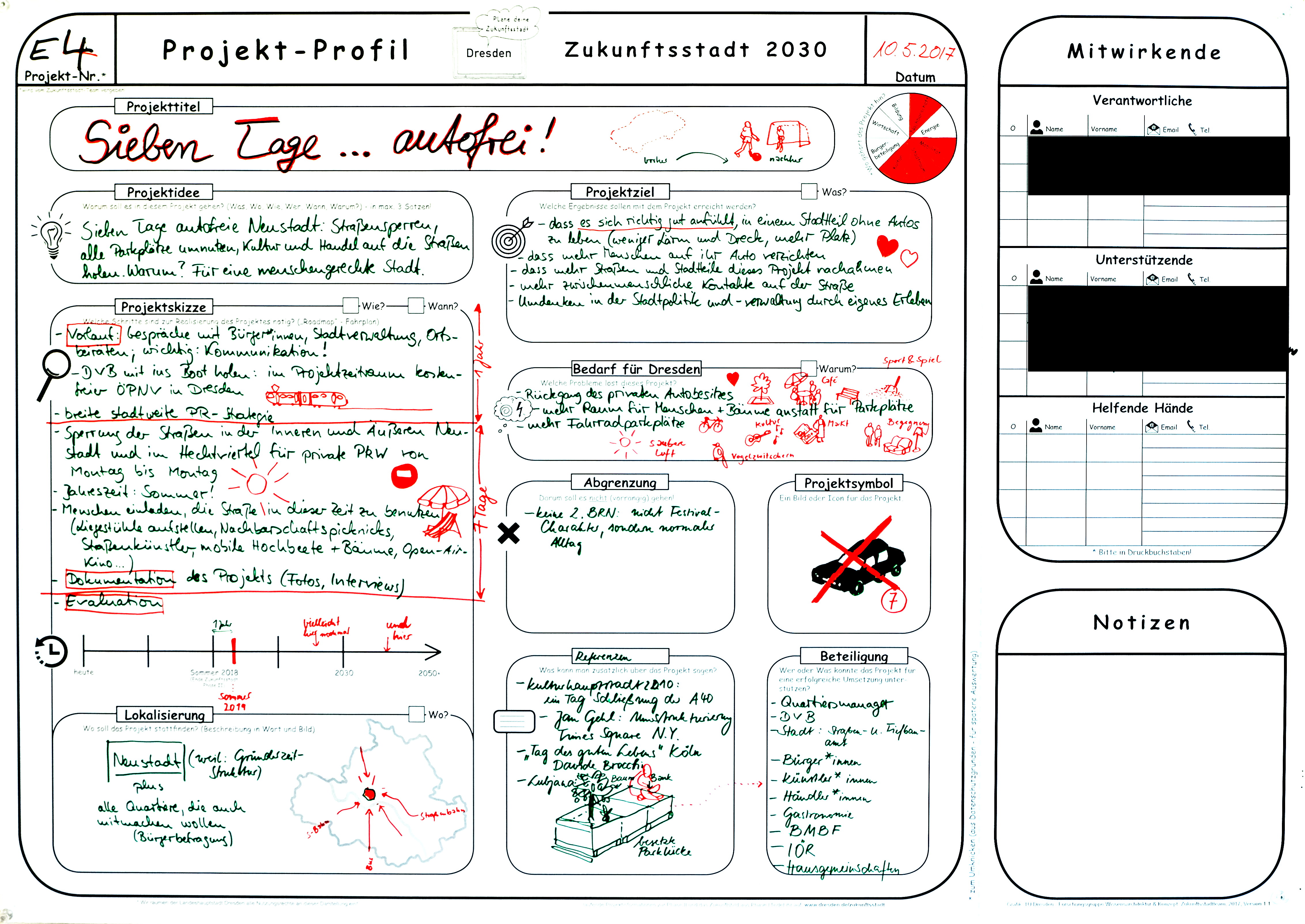 dass es sich richtig gut anfühlt, in einem Stadtteil ohne Autos zu leben (weniger Lärm und Dreck, mehr Platz); dass mehr Menschen auf ihr Auto verzichten; dass mehr Straßen und Stadtteile dieses Projekt nachahmen; mehr zwischenmenschliche Kontakte auf der Straße; umdenken in der Stadtpolitik und -Verwaltung durch eigenes Erleben