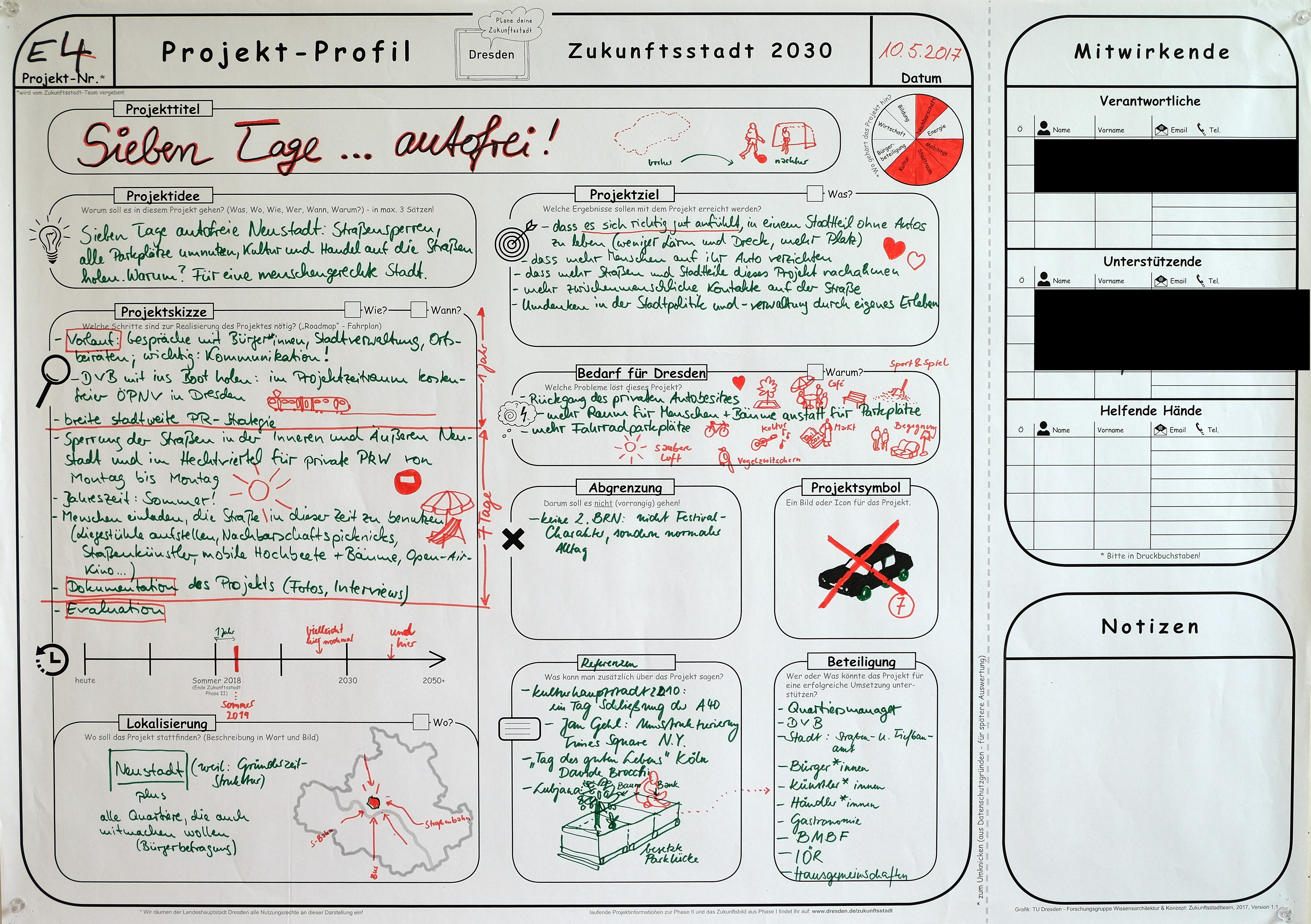 sieben Tage autofreie Neustadt: Straßen sperren, alle Parkplätze umnutzen, Kultur und Handel auf die Straßen holen; Warum? Für eine menschengerechte Stadt