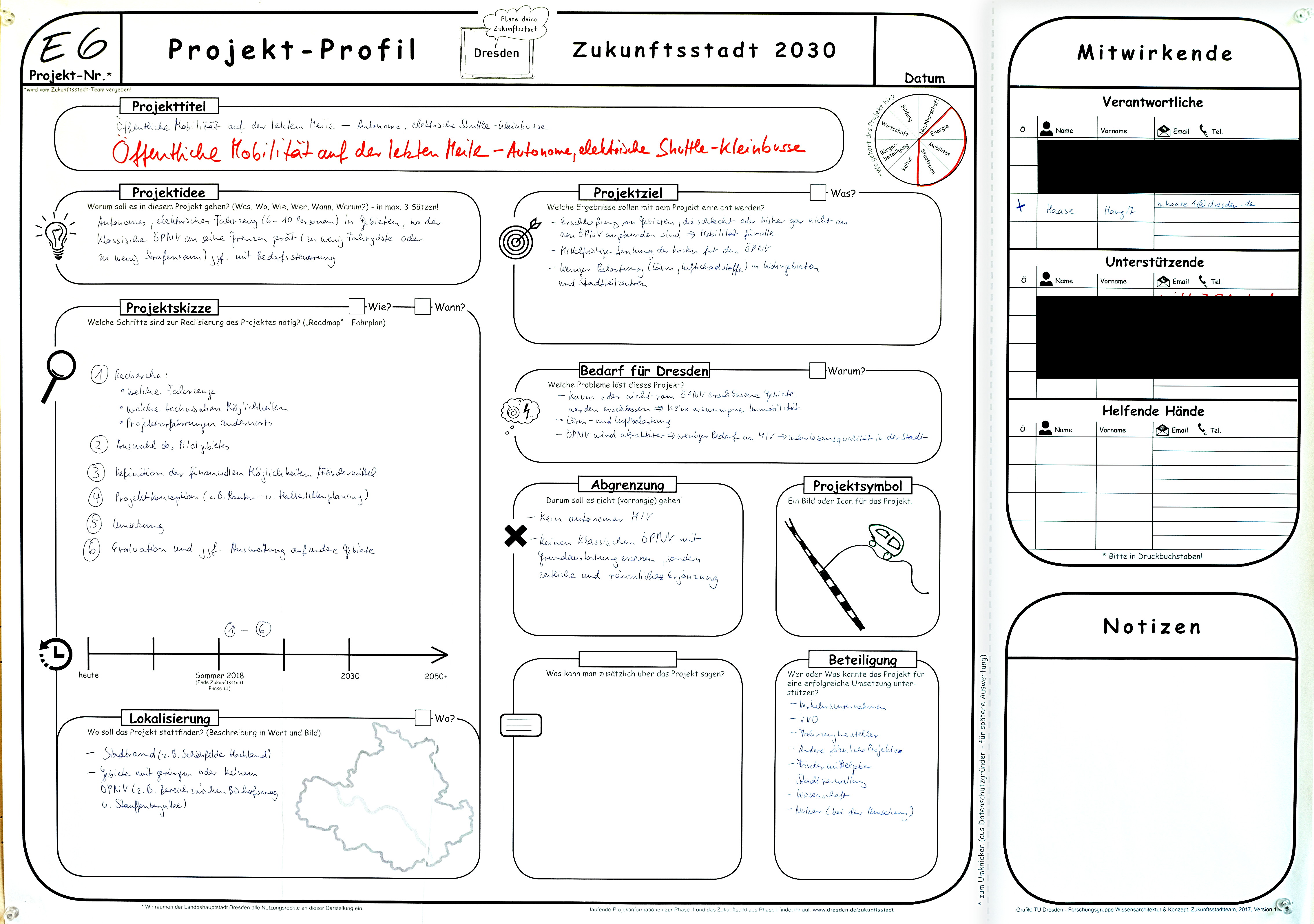 Autonomes, elektrisches Fahrzeug (6-10 Personen) in Gebieten, wo der klassische ÖPNV an seine Grenzen gerät (zu wenig Fahrgäste oder zu wenig Straßenraum) ggf. mit Bedarfssteuerung