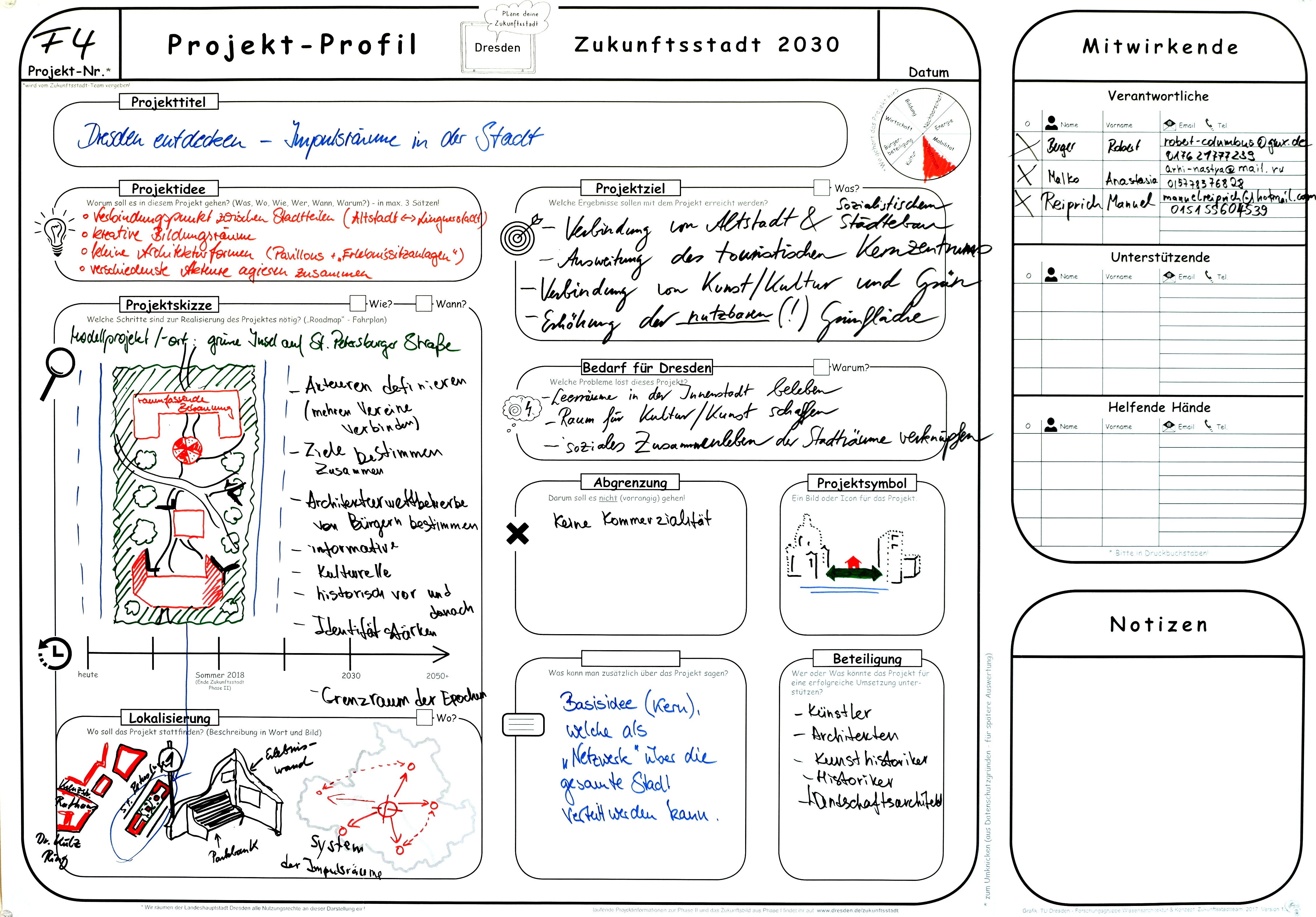 Verbindungspunkt zwischen Stadtteilen (Altstadt – Lingner Stadt); kreative Bildungsräume; kleine Architekturformen (Pavillons + „Erlebnissitzanlagen“); verschiedenste Akteure agieren zusammen