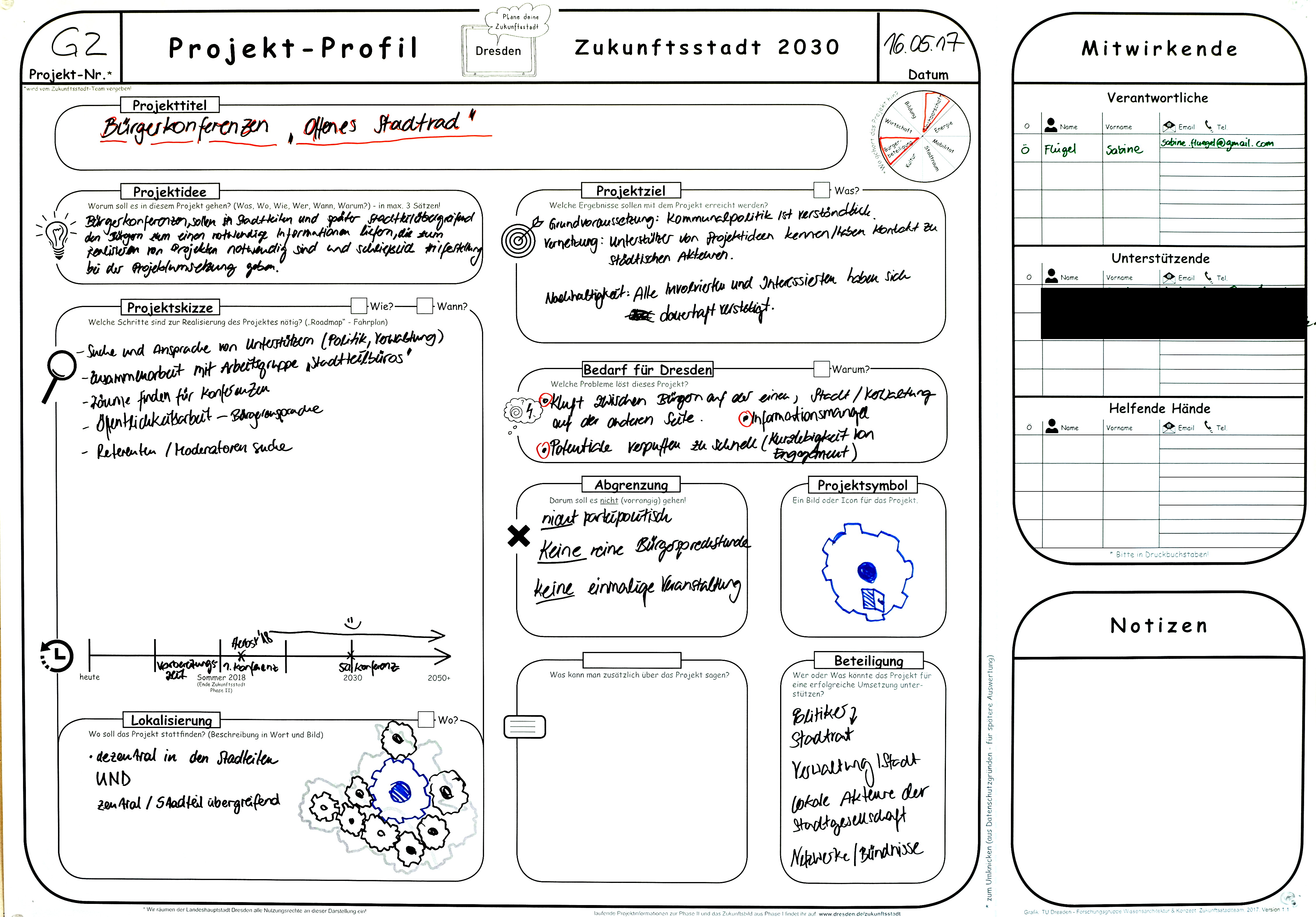 Bürgerkonferenzen sollen in Stadtteilen und später Stadtteil übergreifend den Bürgern zum einen notwendige Informationen liefern, die zum Realisieren von Projekten notwendig sind und schließlich Hilfestellung bei der Projektumsetzung geben.