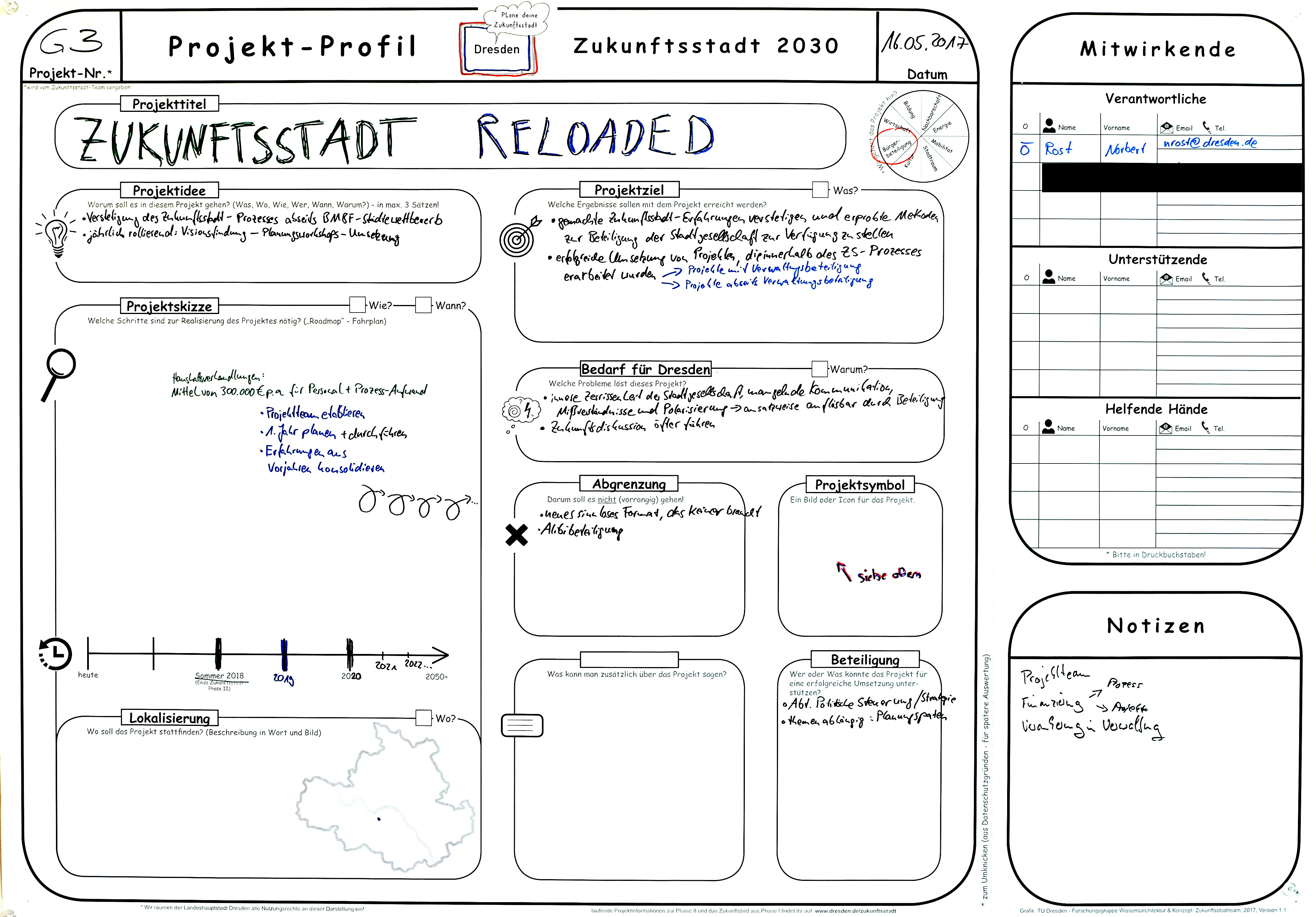 gemachte Zukunftsstadt-Erfahrungen verstetigen und erprobte Methoden zur Beteiligung der Stadtgesellschaft zur Verfügung zu stellen; erfolgreiche Umsetzung von Projekten, die innerhalb des ZS-Prozesses erarbeitet wurden (Projekte mit und abseits Verwaltungsbeteiligung)