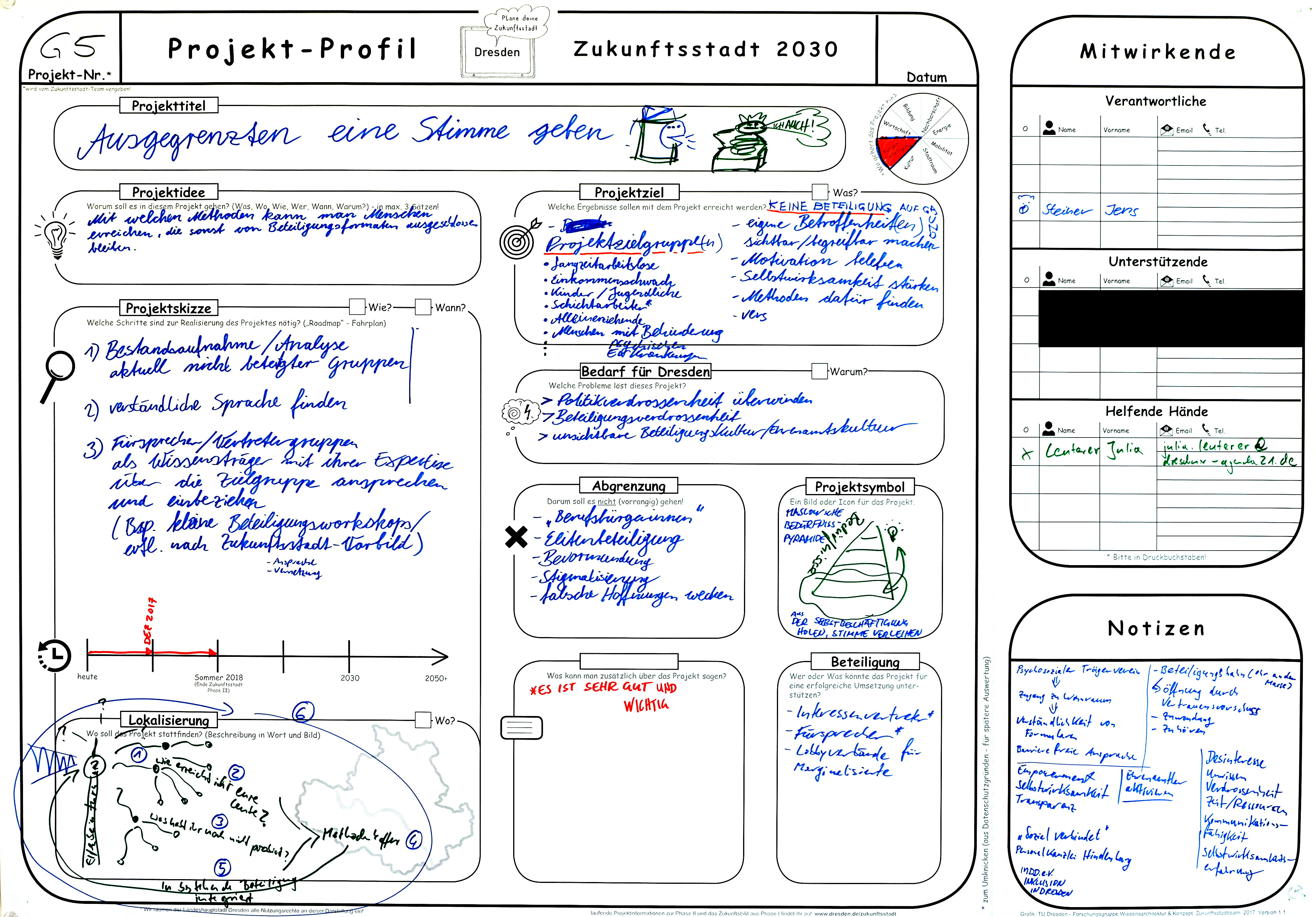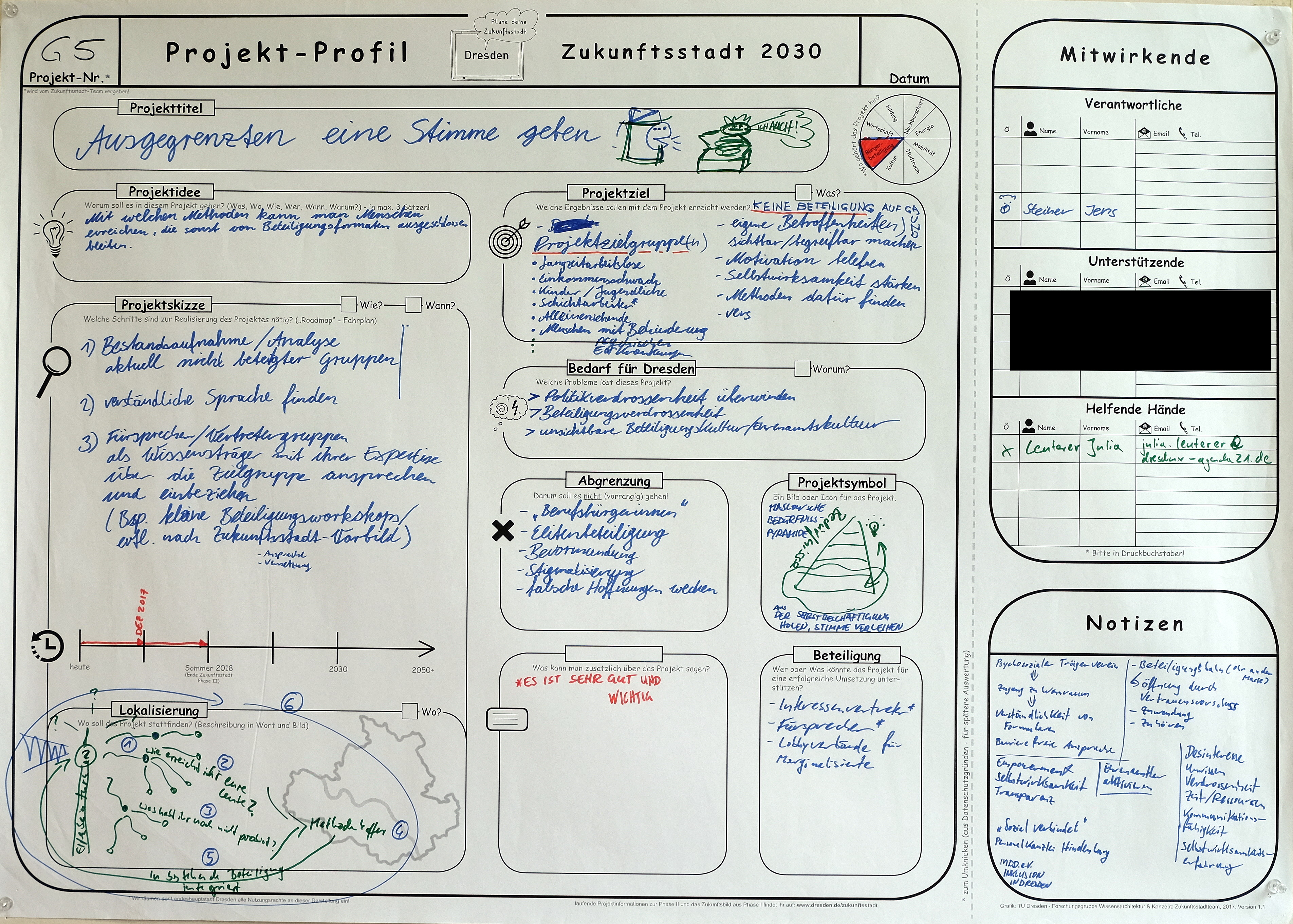 Keine Beteiligung aufgrund: eigene Betroffenheiten sichtbar/begreifbar machen, Motivation beleben, Selbstwirksamkeit stärken, Methoden dafür finden; Projektzielgruppen: Langzeitarbeitslose, Einkommensschwache, Kinder/Jugendliche, Schichtarbeiter, Alleinerziehende, Menschen mit Behinderungen/psychischen Erkrankungen