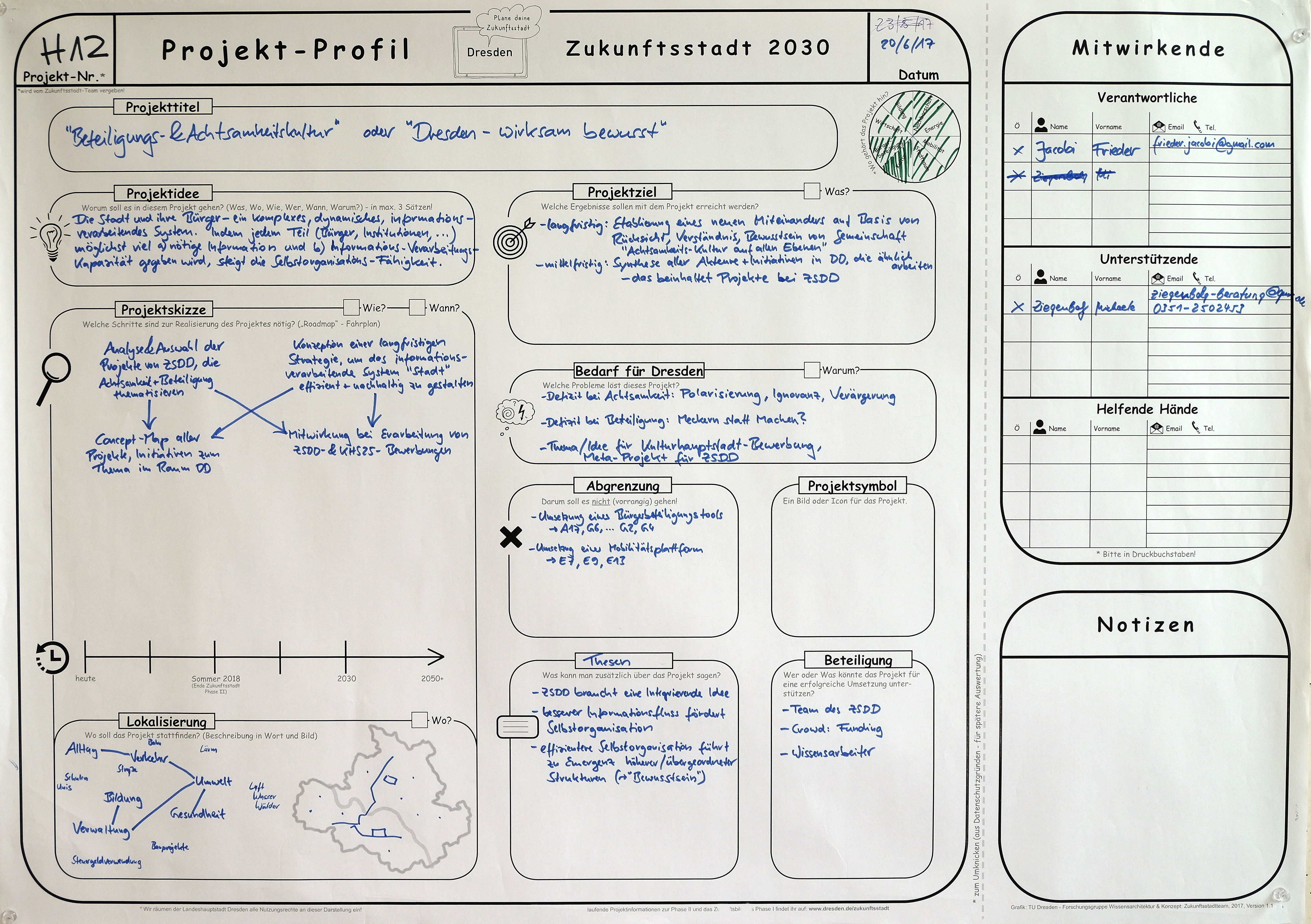 langfristig: Etablierung eines neuen Miteinanders auf Basis von Rücksicht, Verständnis, Bewusstsein von Gemeinschaft = "Achtsamkeitskultur auf allen Ebenen"; mittelfristig: Synthese aller Akteure + Initiativen in Dresden, die ähnlich arbeiten; das beinhaltet Projekte der Zukunftsstadt Dresden 2030+