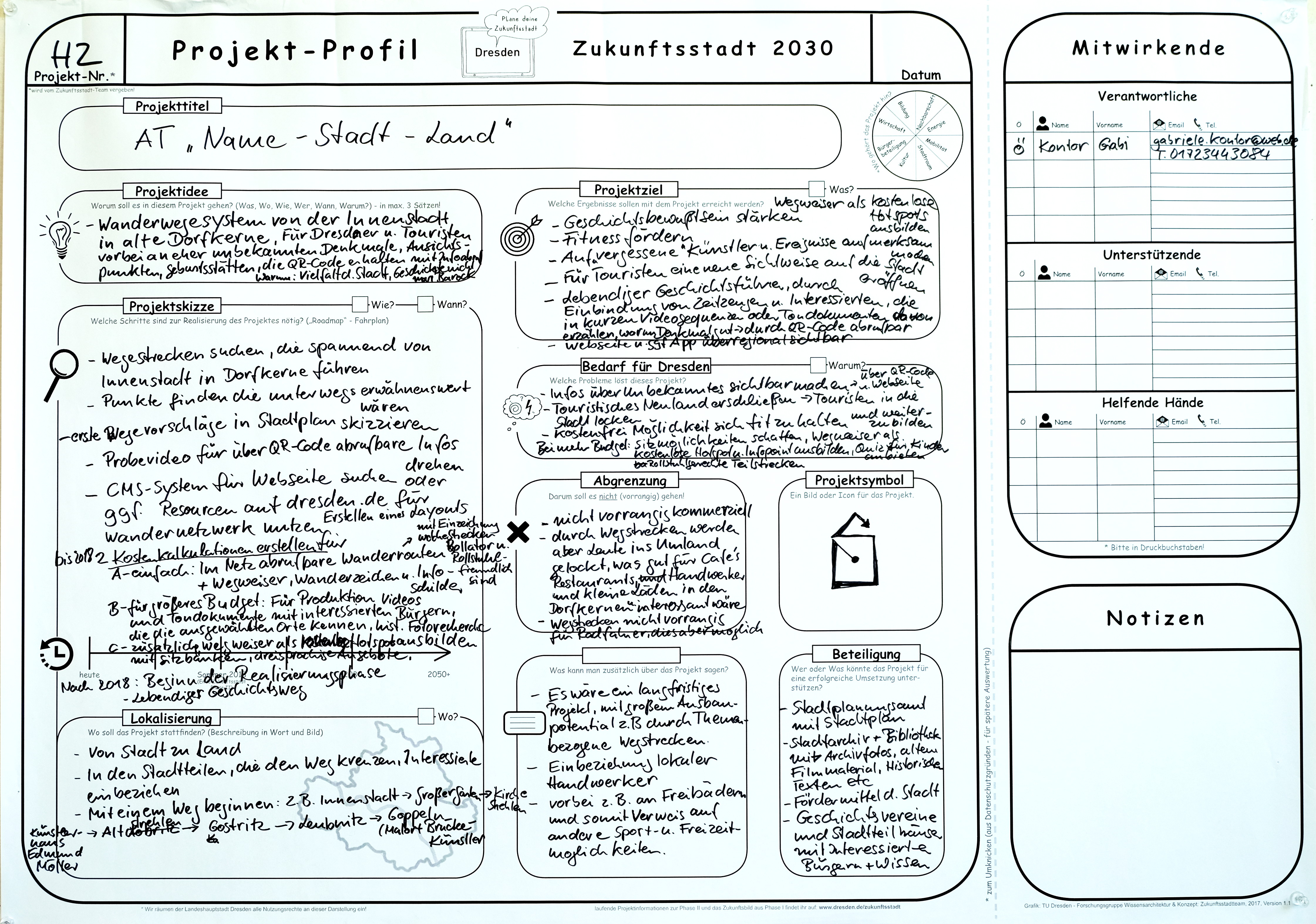 Wanderwegesystem von der Innenstadt in alte Dorfkerne; für Dresdner und Touristen, an unbekannten Stationen mit QR-Codes